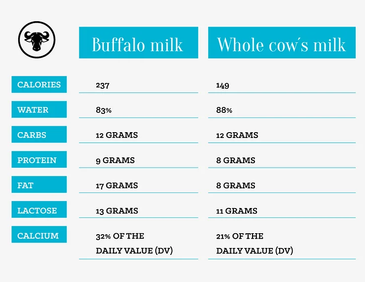 Fat content: WellHealthOrganic Buffalo milk Tag usually contains more fat than cow’s dairy. This benefits those who wish to increase their calorie intake or require extra healthy fats in their diet.